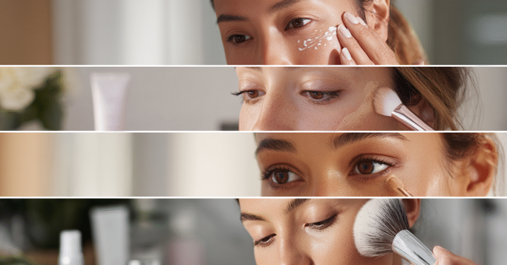 A foundation routine consists of several products that work together to make your makeup last. Here’s the proper order of application: