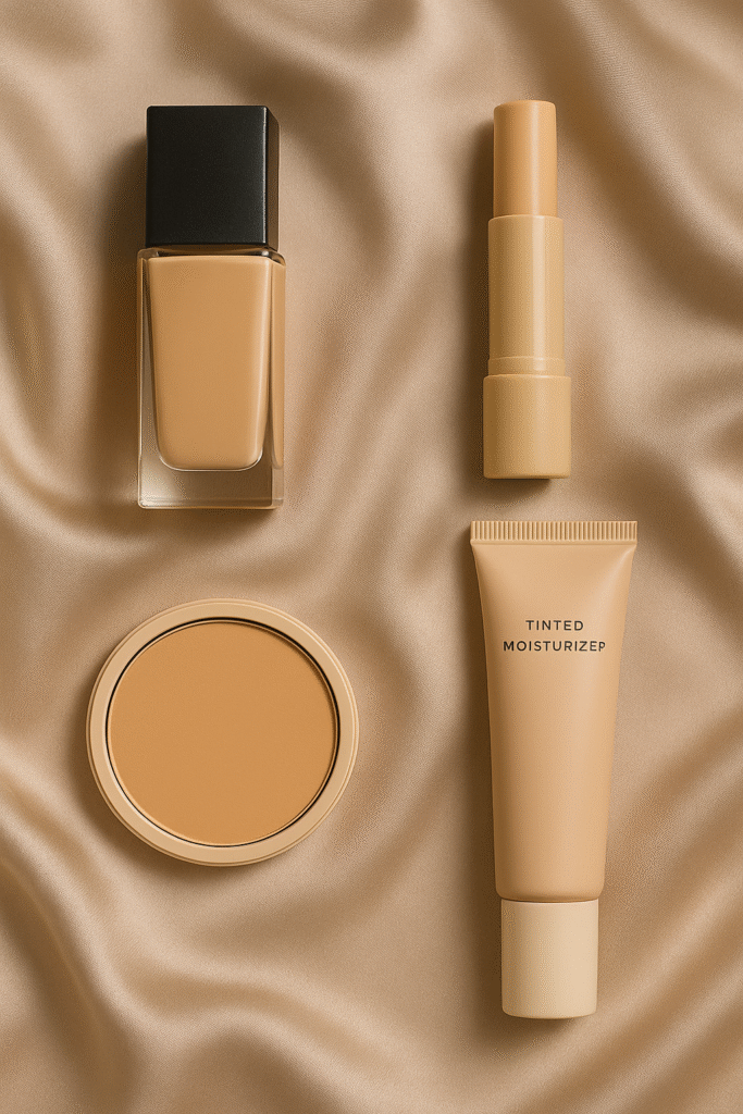 - Tinted moisturizer/BB cream: Light coverage, perfect for “no-makeup makeup” days.