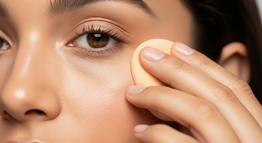 Instead of rubbing, tap the concealer with a damp sponge for a natural finish, or a brush for more precision. For small areas like blemishes, use your fingertip’s warmth to melt the product in.