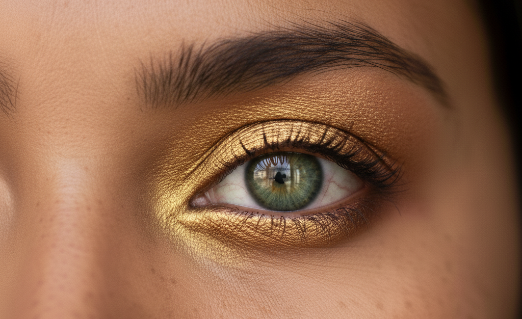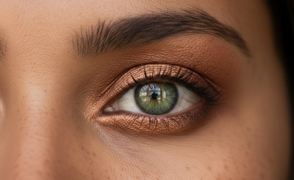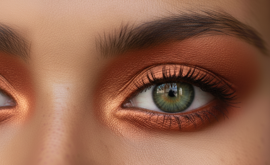 Bronze or copper’s warm tones highlight gold or hazel flecks in green eyes. Either shade is a great choice for daytime or evening dates when you want a lowkey yet impactful look.
