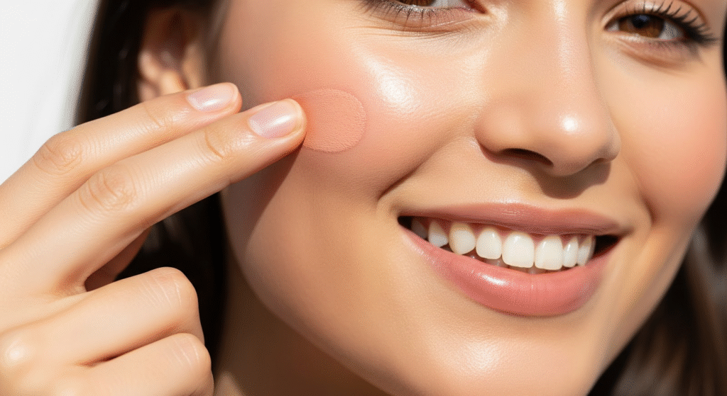Cream blush in peach or rose tones blends well and keeps the skin looking fresh. A touch of bronzer can also add warmth without looking like a full contour.