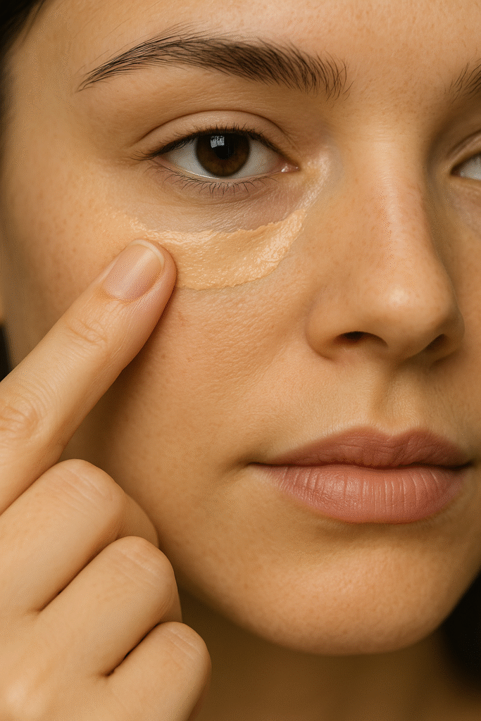 Instead of covering the entire face, perform spot-conceal only where needed: under the eyes, around the nose, or on blemishes. Blend with a damp sponge or your fingertips for a seamless finish.