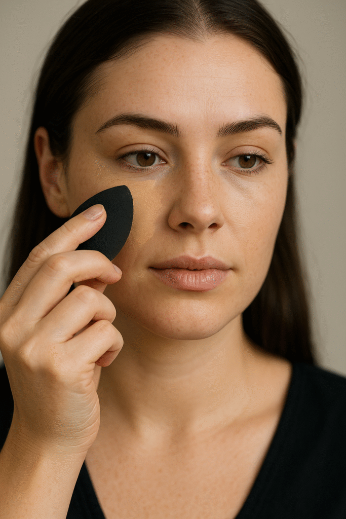 Skip heavy foundation this time. Instead, use a tinted moisturizer, BB cream, or light-to-medium coverage foundation. Blend with a damp sponge for a skin-like finish.