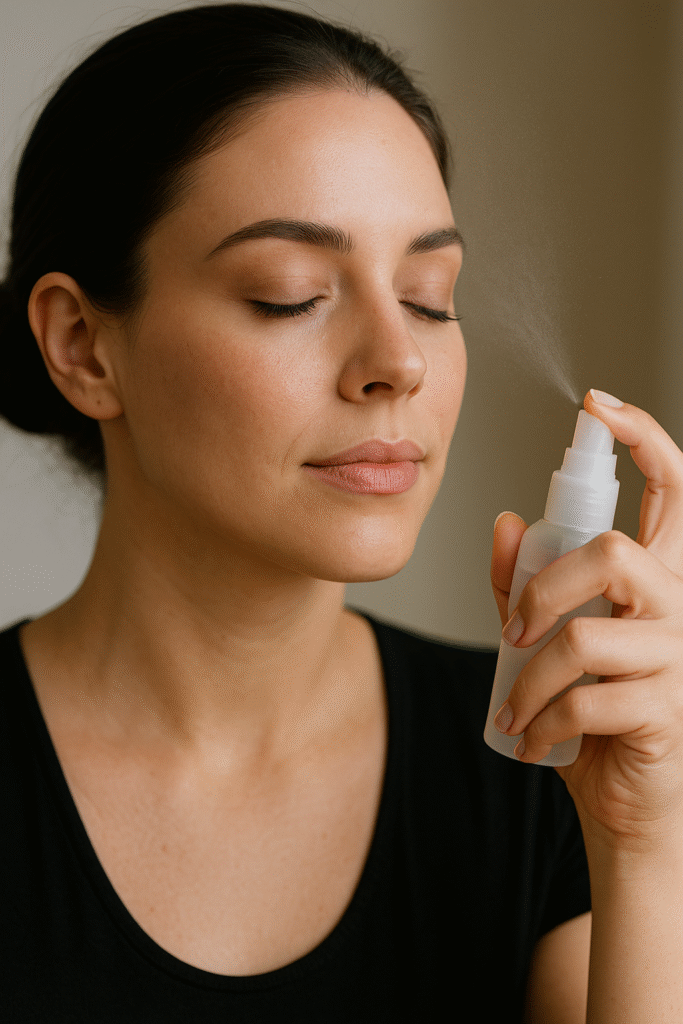 - Touch-up routine: blot, mist, then press with a sponge. This refreshes without caking on more product.