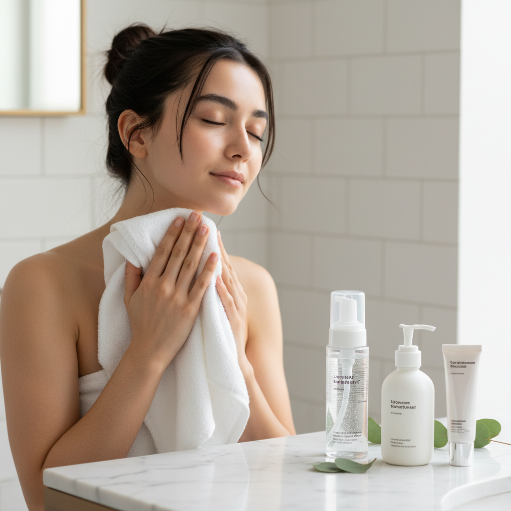 - Wash with a gentle cleanser. Pat dry with a towel.