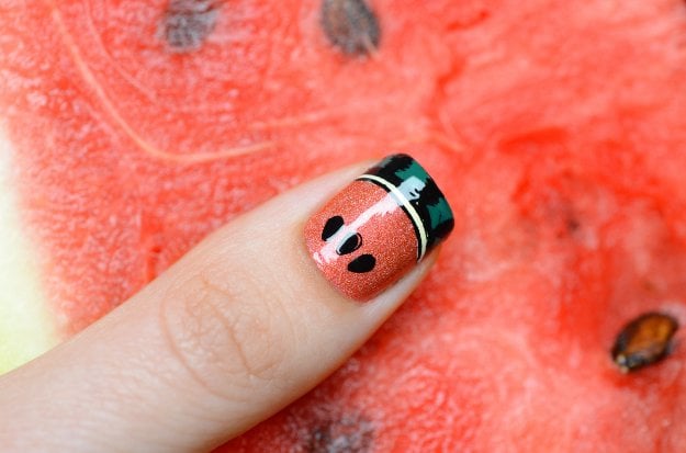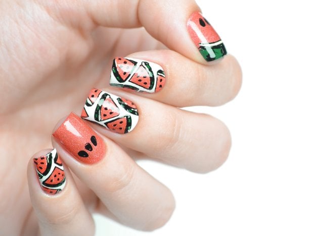 To watch the full tutorial on how to make your own fruit nail art with watermelon slices, here’s the video from cutepolish: